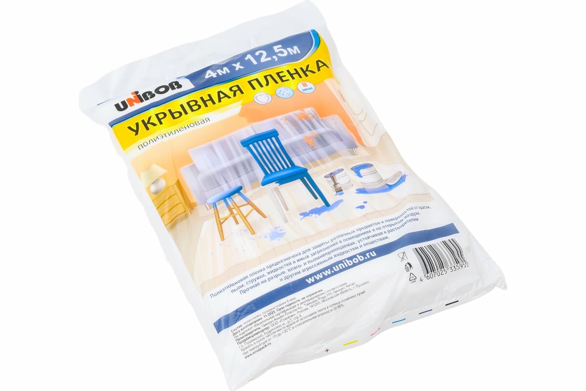 Пленка укрывная полиэтиленовая Unibob (4м х 12.5м, 8мкм) 1шт.