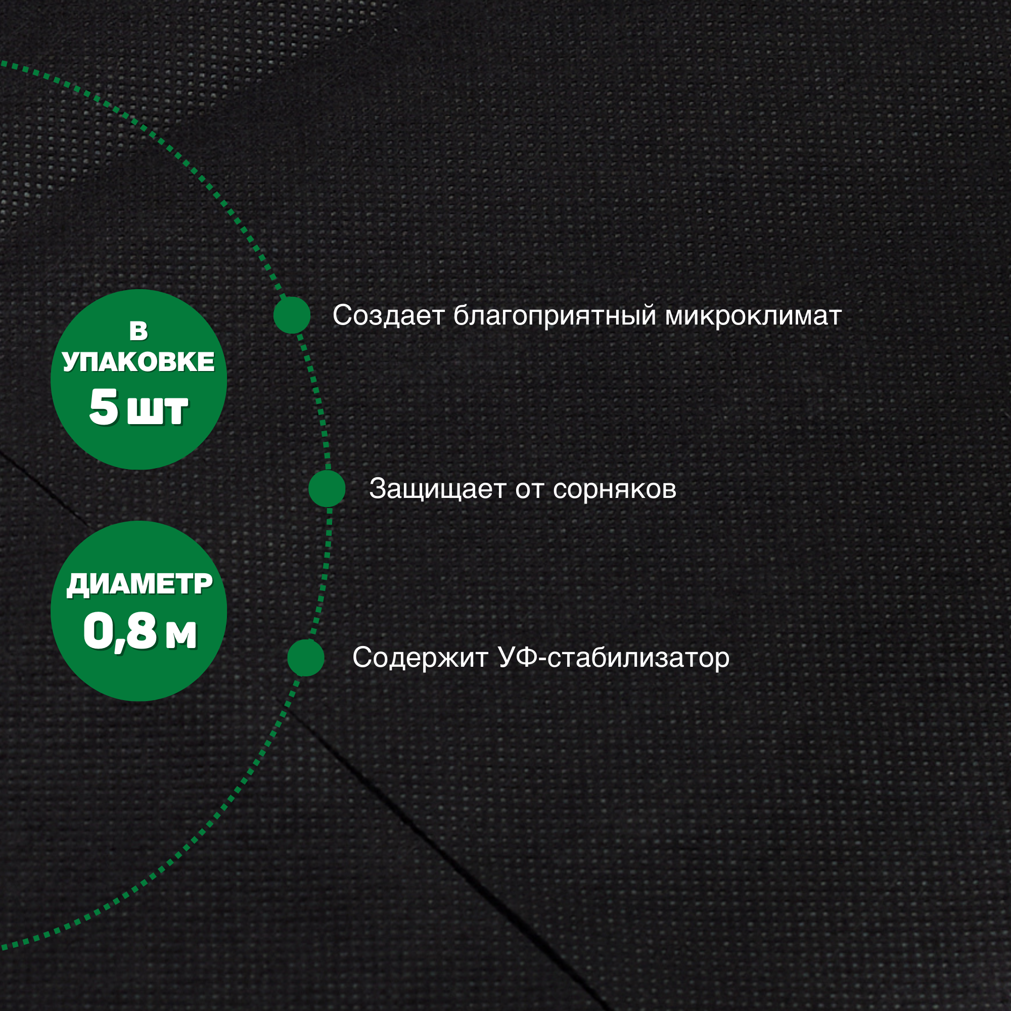 Приствольный круг d 0,8 м с УФ, мульчирующий укрывной материал от сорняков 2 уп по 5 шт