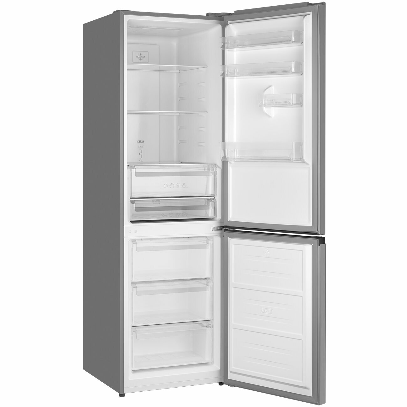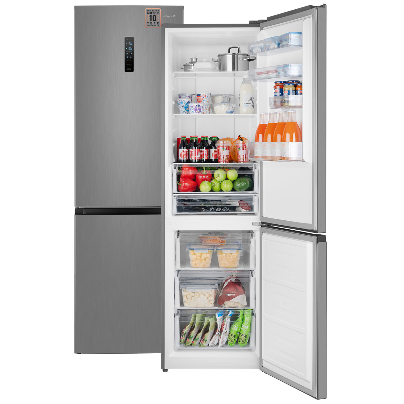 Купить Отдельностоящий холодильник с инвертором Weissgauff WRK 2000 Total NoFrost Inverter Inox двухкамерный шириной 60 см, 3 года гарантии, Тихий режим 40 дБ, Полезный объём 342л, Электронное управление, Супер заморозка 15кг сутки, Зона свежести, А++