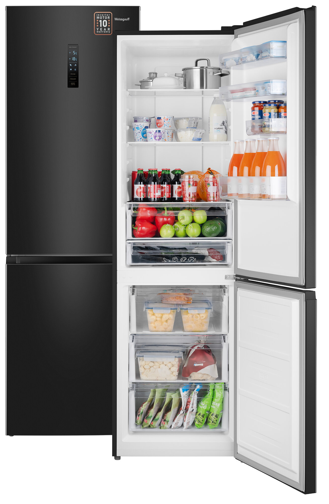 Купить Отдельностоящий холодильник с инвертором Weissgauff WRK 2000 Total NoFrost Inverter Black Inox двухкамерный шириной 60 см, 3 года гарантии, Тихий режим 40 дБ, Полезный объём 342л, Электронное управление, Супер заморозка 15кг сутки, Зона свежести, А++