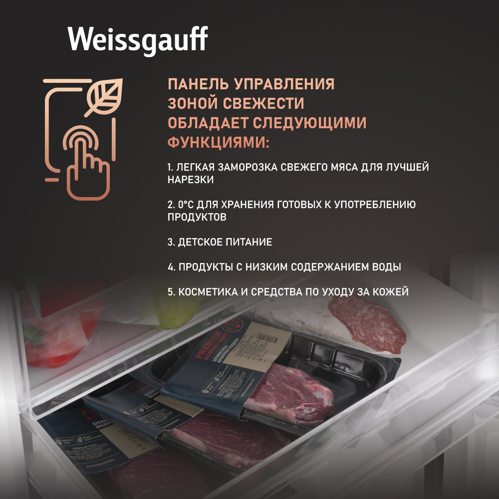 Отдельностоящий холодильник с инвертором Weissgauff WRK 2000 Total NoFrost Inverter White двухкамерный шириной 60 см, 3 года гарантии, Тихий режим 40 дБ, Полезный объём 342л, Электронное управление, Супер заморозка 15кг сутки, Зона свежести, А++