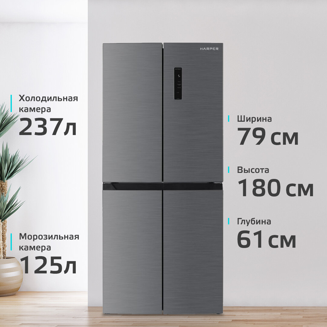 Холодильник трехкамерный 404 л /Total No Frost /А ++ /инверторный, Harper RH6966BI, stainless steel