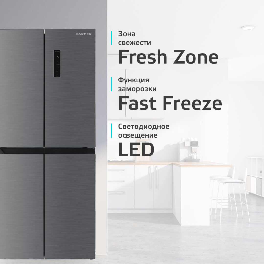 СохранитьХолодильник трехкамерный 404 л / Total No Frost / А ++ / инверторный, Harper RH6966BI, stainless steel интересное: