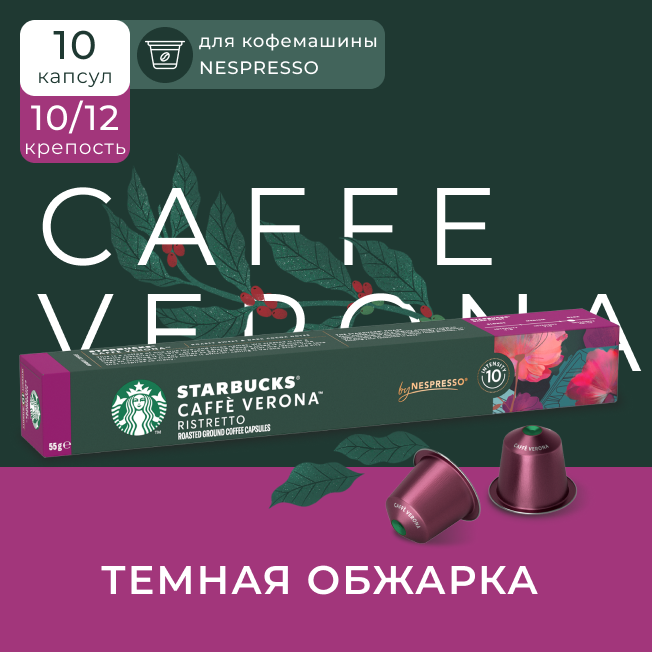 Кофе в капсулах "Verona" от Starbucks, для системы Nespresso, средняя обжарка, 10 штук