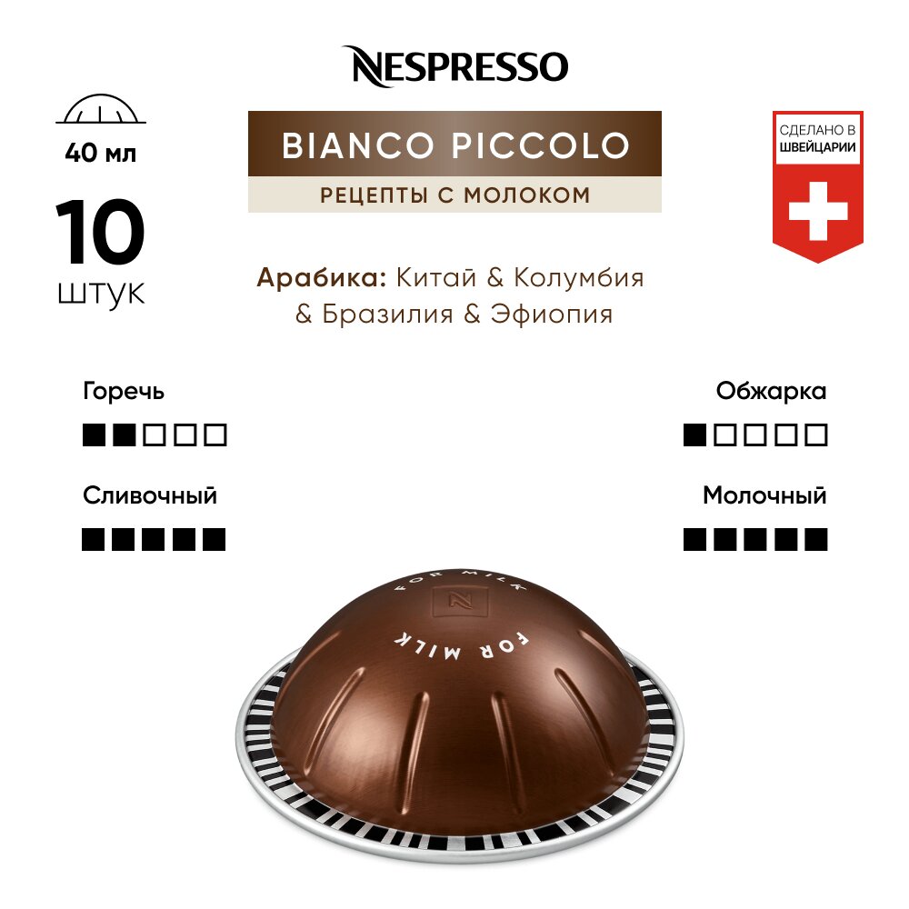 Купить Кофе в капсулах Nespresso Vertuo BIANCO PICCOLO, 10 капсул