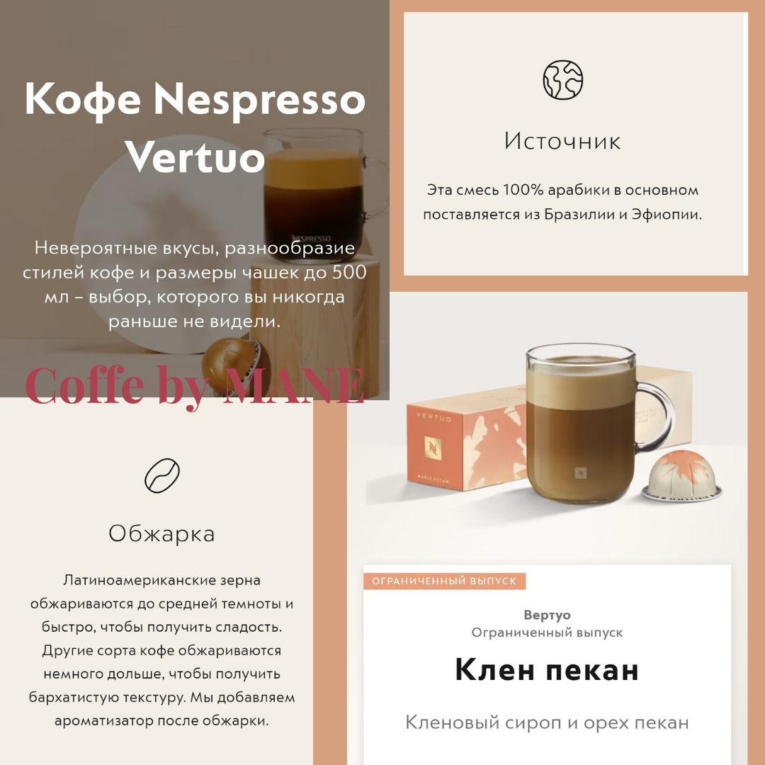 Ниже Вы можете прочитать отзывы на Кофе в капсулах Nespresso VERTUO Maple Pecan, 10 кап., 230мл, ознакомится с подробными характеристиками, посмотреть интересные обзоры и фотографии на Кофе в капсулах Nespresso VERTUO Maple Pecan, 10 кап., 230мл.
