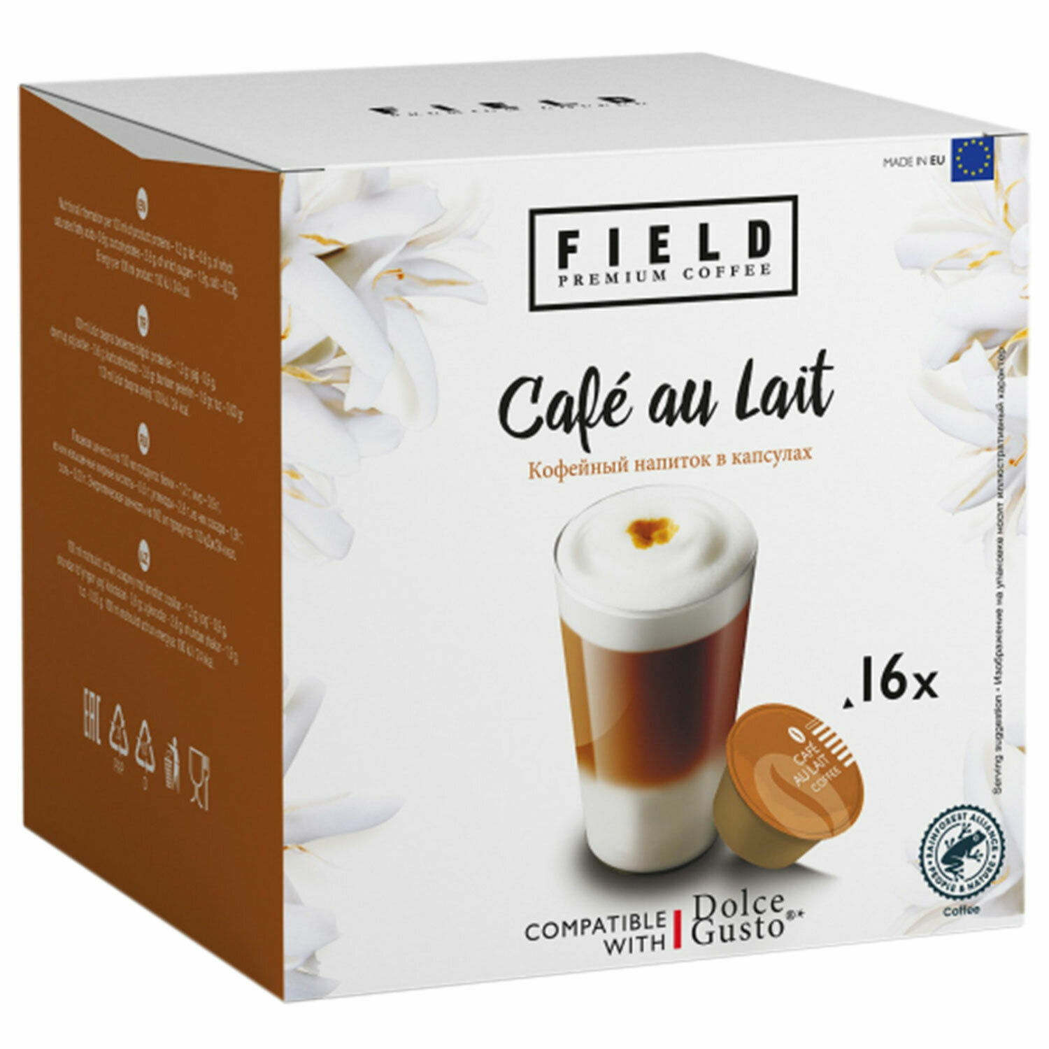 | Состав | заменитель сливок на растительной основе (кукурузный сироп, гидрогенизированное кокосовое масло, регуляторы кислотности (цитрат калия 3-замещенный, гидрокарбонат натрия), молочный белок, обезжиренное молоко, эмульгаторы (E471, E472e, E481), агент антислеживающий (карбонат кальция), сахар, агент желирующий (хлорид калия), сахарный сироп, подсластитель (стевия), молочный кальций, уплотнитель (хлорид магния)), кофе натуральный растворимый |