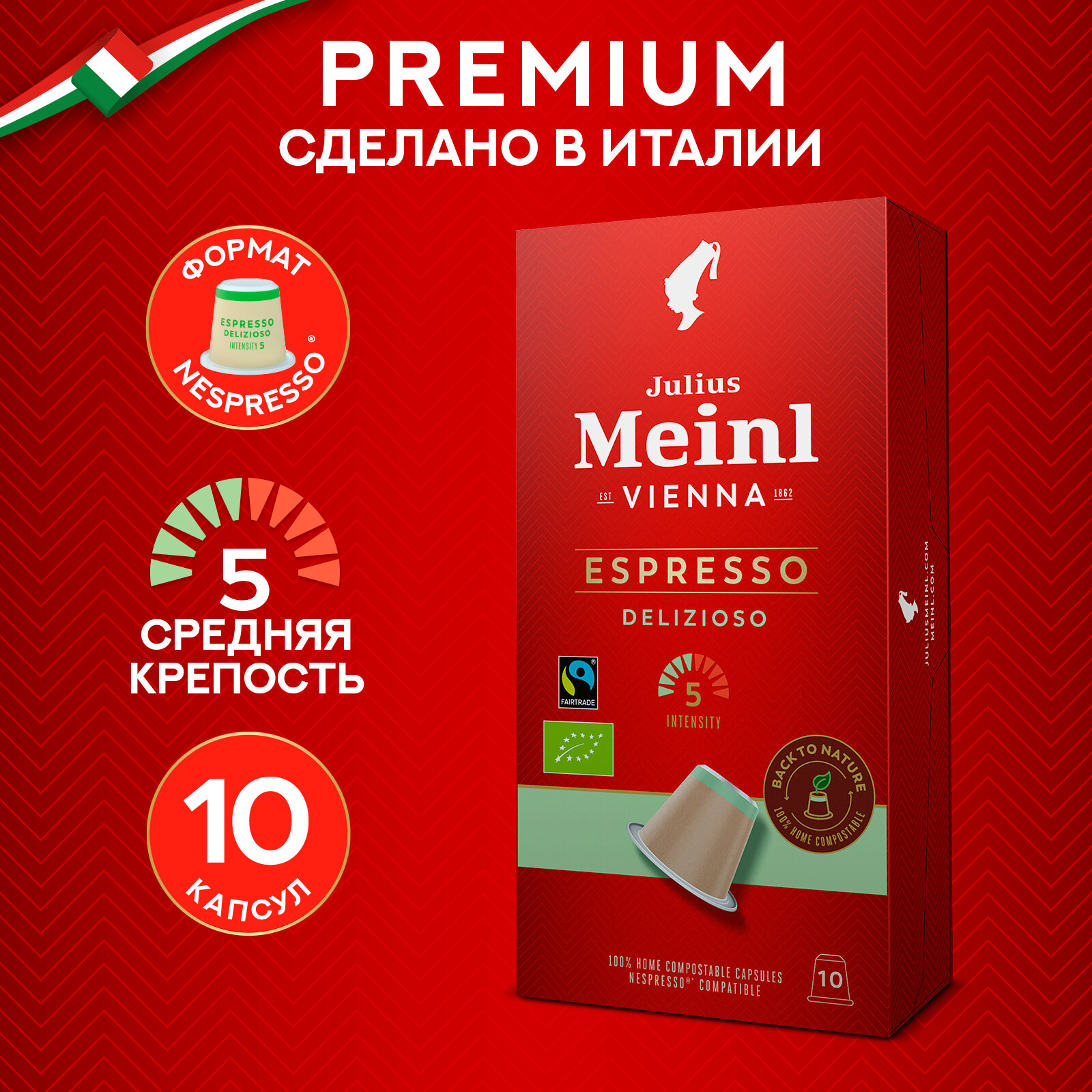 Кофе в капсулах Julius Meinl Espresso Delizioso (Эспрессо Делизиозо), стандарта Nespresso, 10шт