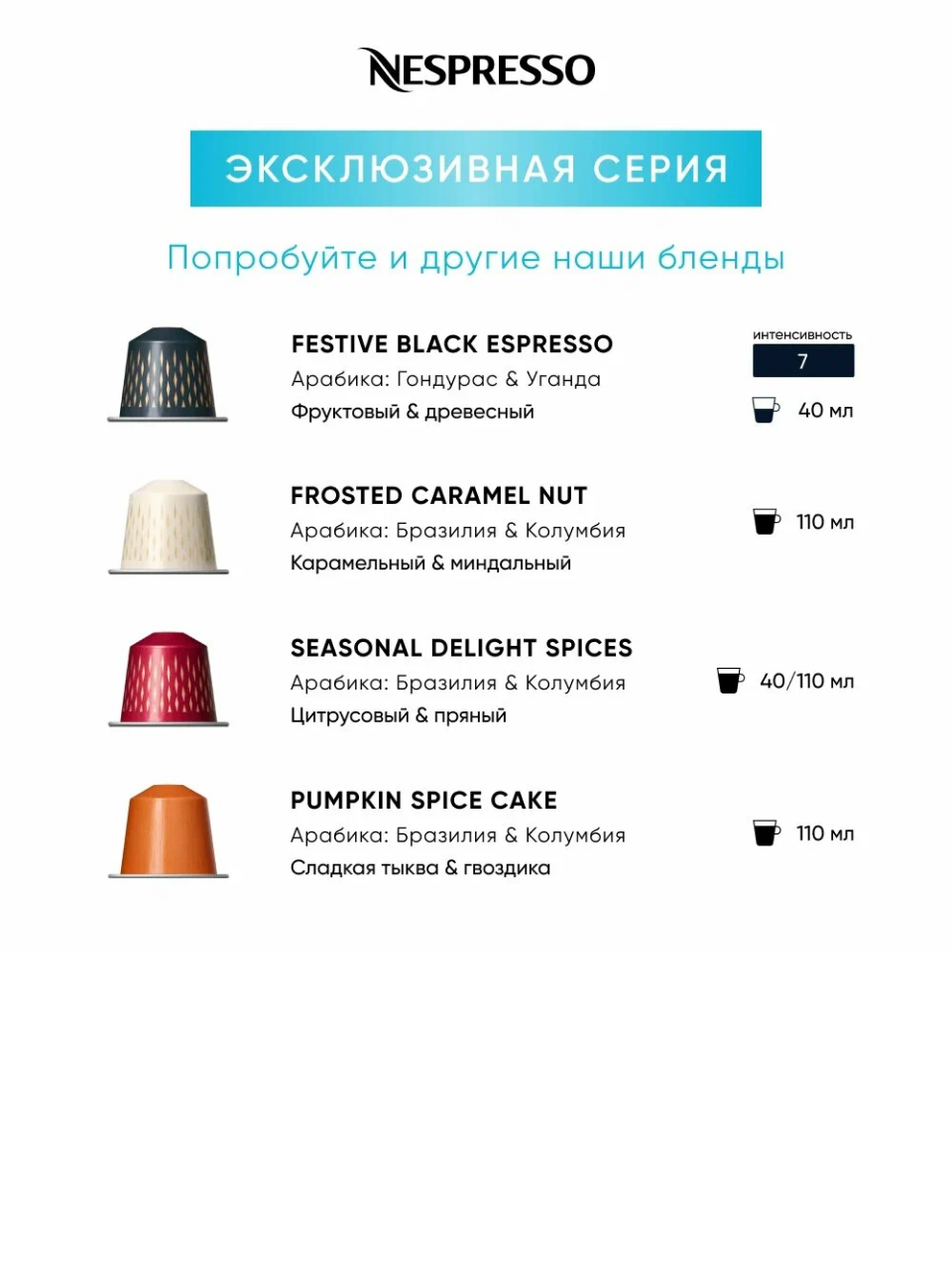 | Тип капсул | Nespresso Original |