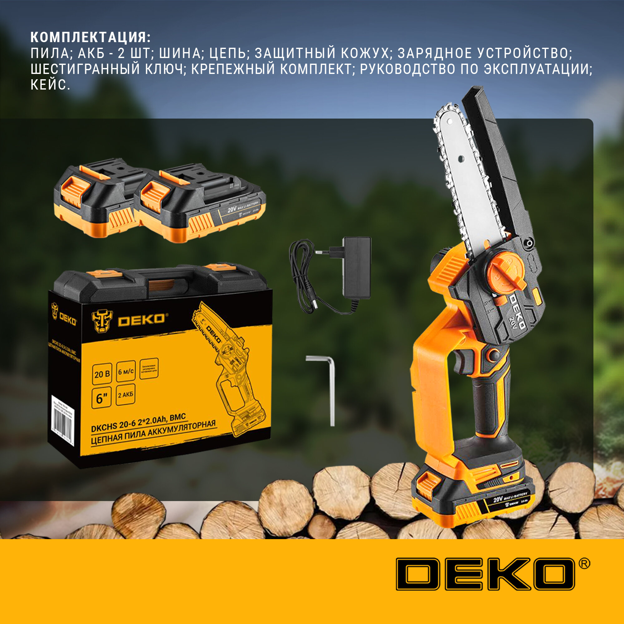Купить Пила цепная аккумуляторная DEKO DKCHS 20-6, 20В, 2x2.0Ач в кейсе