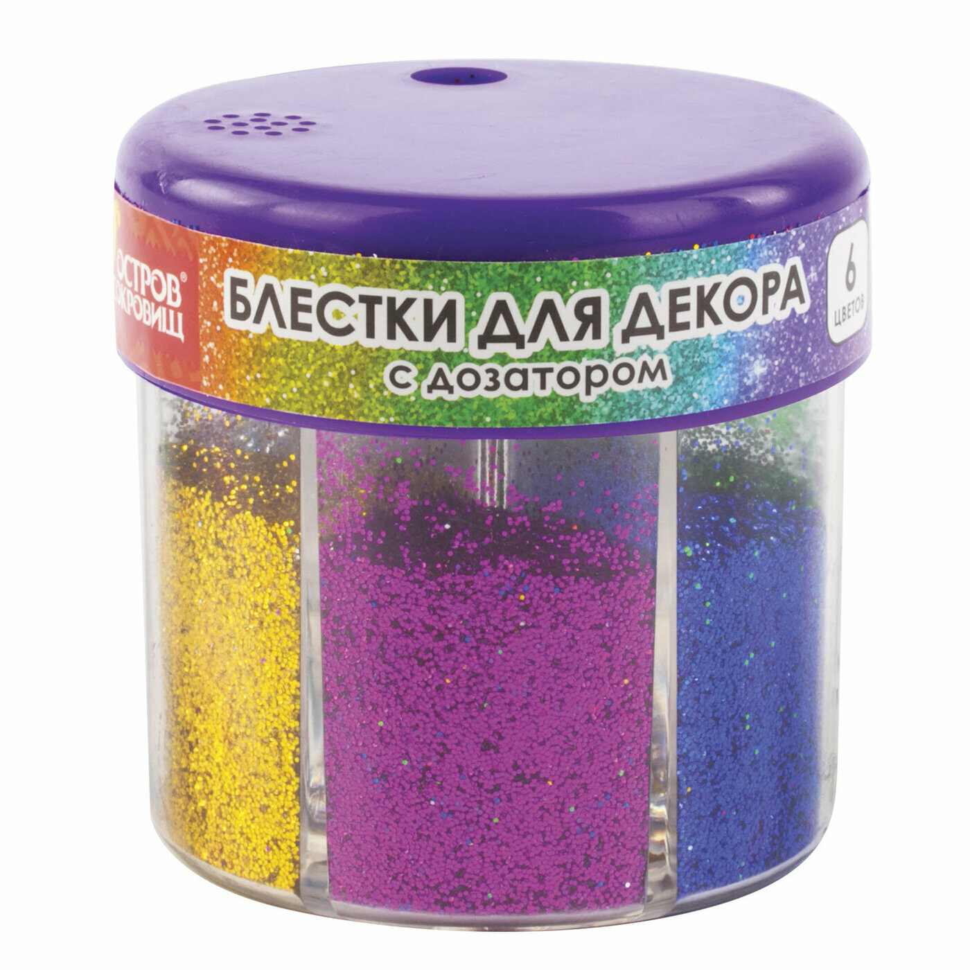 Блестки (глиттер) для декора, поделок, DIY, творчества, оформления, остров сокровищ, диспенсер с дозатором, 6 цветов по 10 грамм, 191372