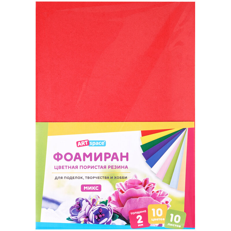 Купить Цветная пористая резина (фоамиран) ArtSpace, А4, 10 листов, 10 цветов, толщина 2 мм, ассорти