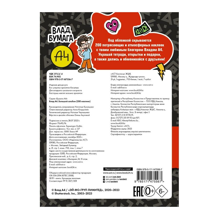Влад А4. Большой альбом 200 наклеек. Астрель