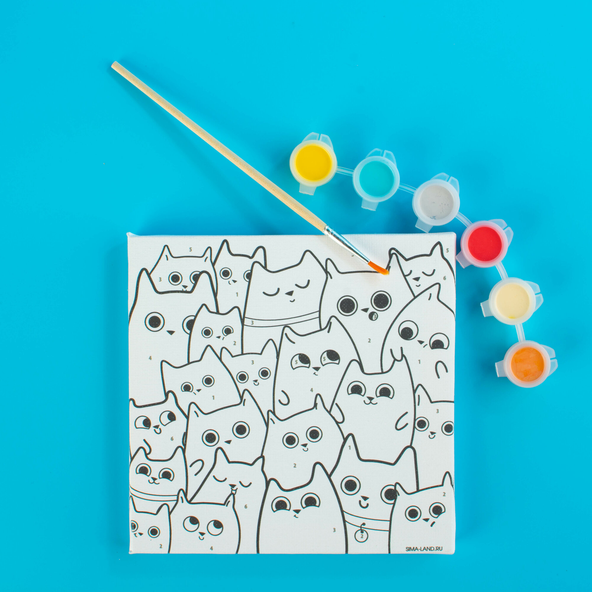 Купить Картина по номерам, Школа талантов "Милые котята", 6 цветов, размер: 15 х 15 см. на холсте, для детей и малышей