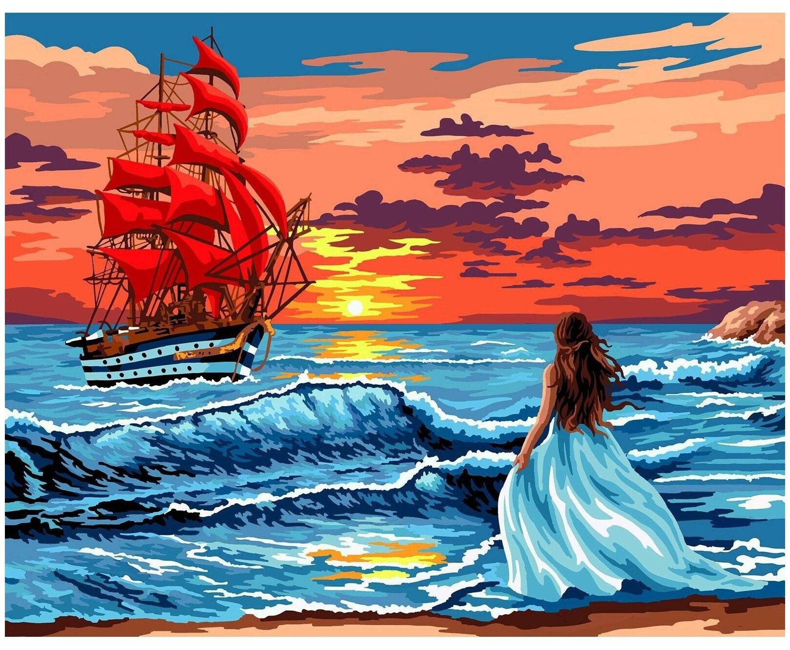 | Дополнительная информация | Картина по номерам на холсте с подрамником «Алые паруса на закате» 40х50 см понравится и детям, и взрослым. |