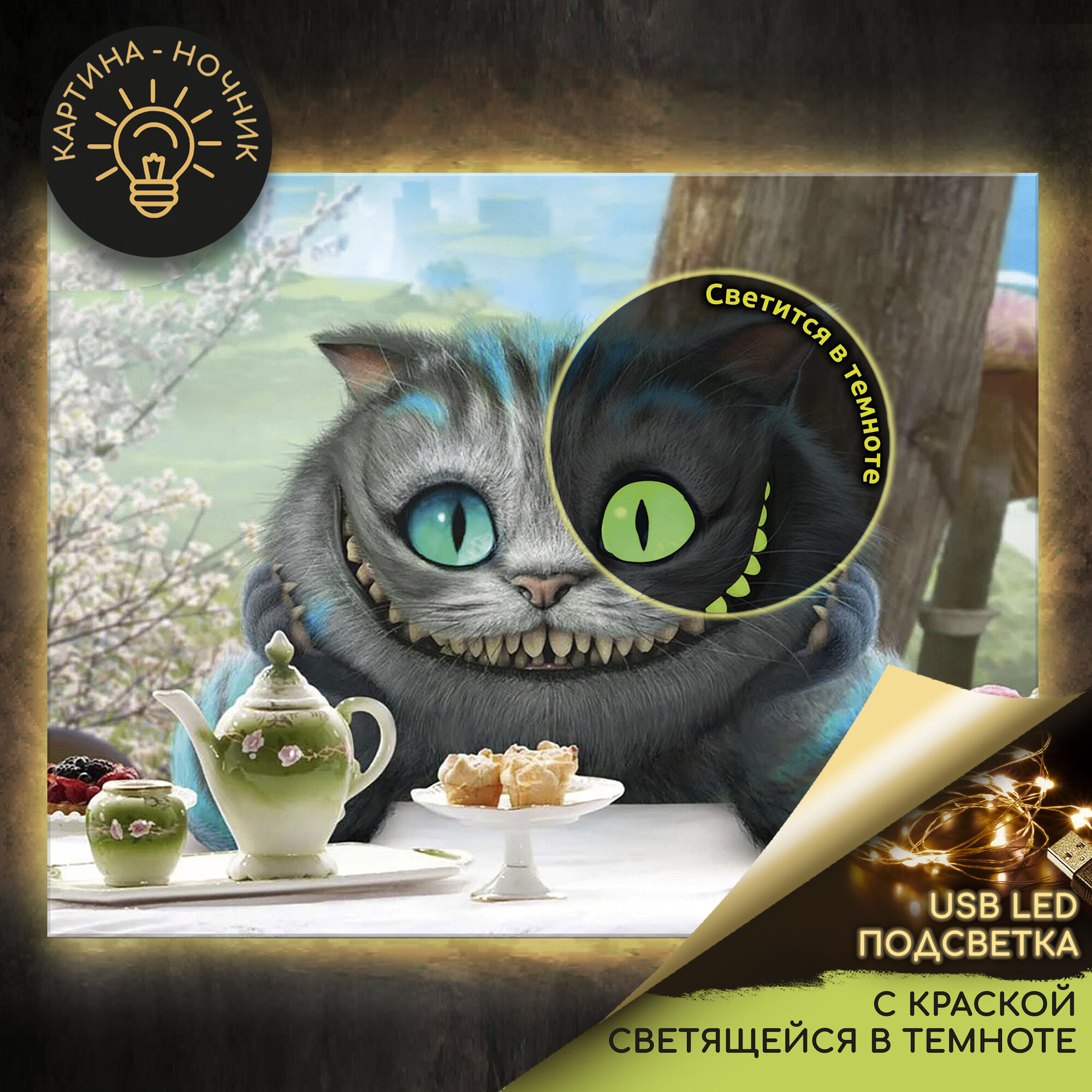 СохранитьКартина по номерам с LED подсветкой и светящейся краской (40х50) чеширский КОТ (32 цвета) интересное: