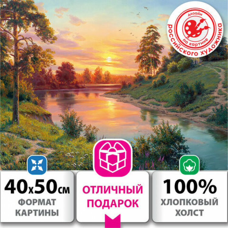 Картина по номерам на холсте на подрамнике 40х50 природа Пейзаж с рекой, набор для творчества с акриловыми красками и кистями, Остров Сокровищ, 663289