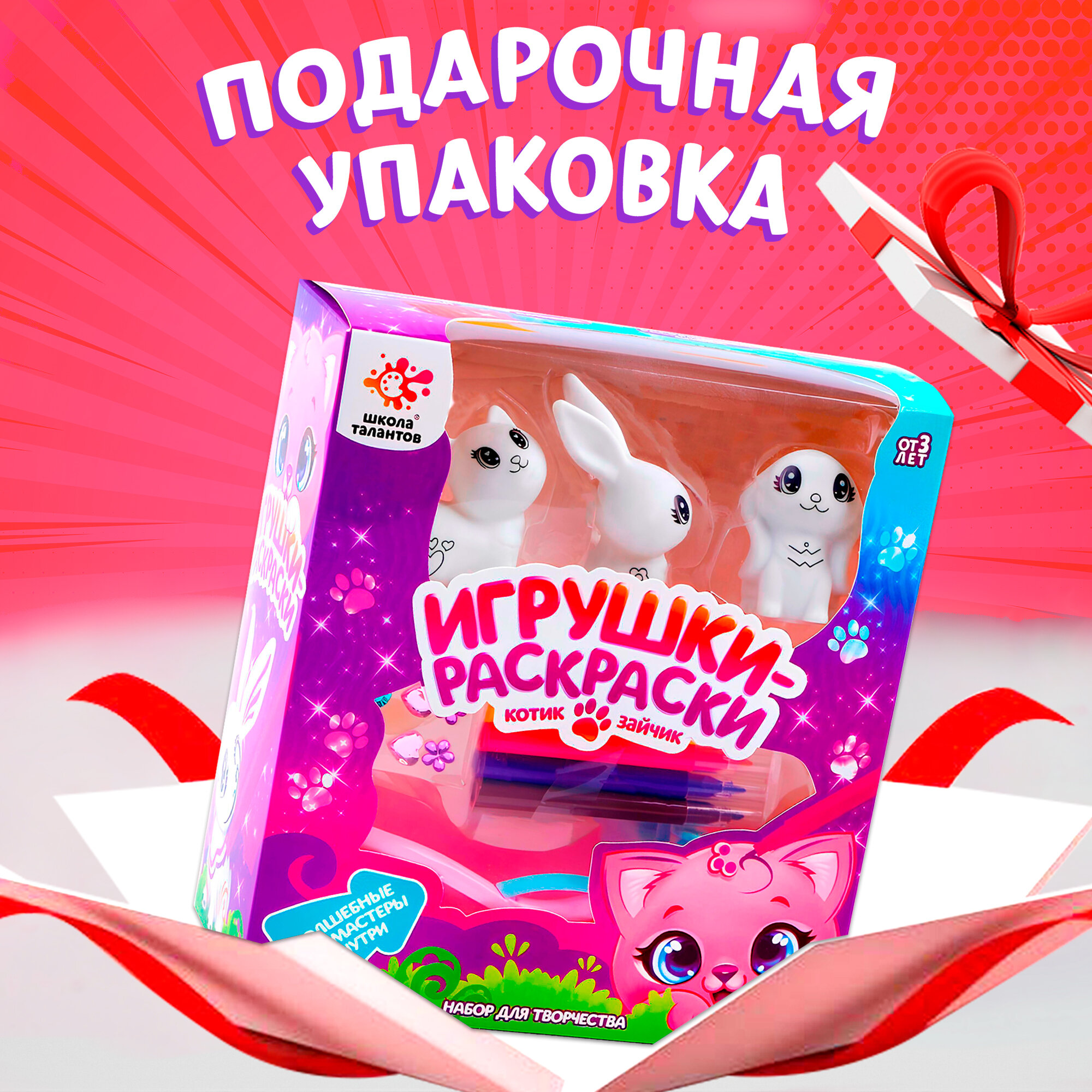 Купить Набор для творчества "Игрушки-раскраски. Котик, зайчик", фломастеры, блокнот, стразы, для детей и малышей