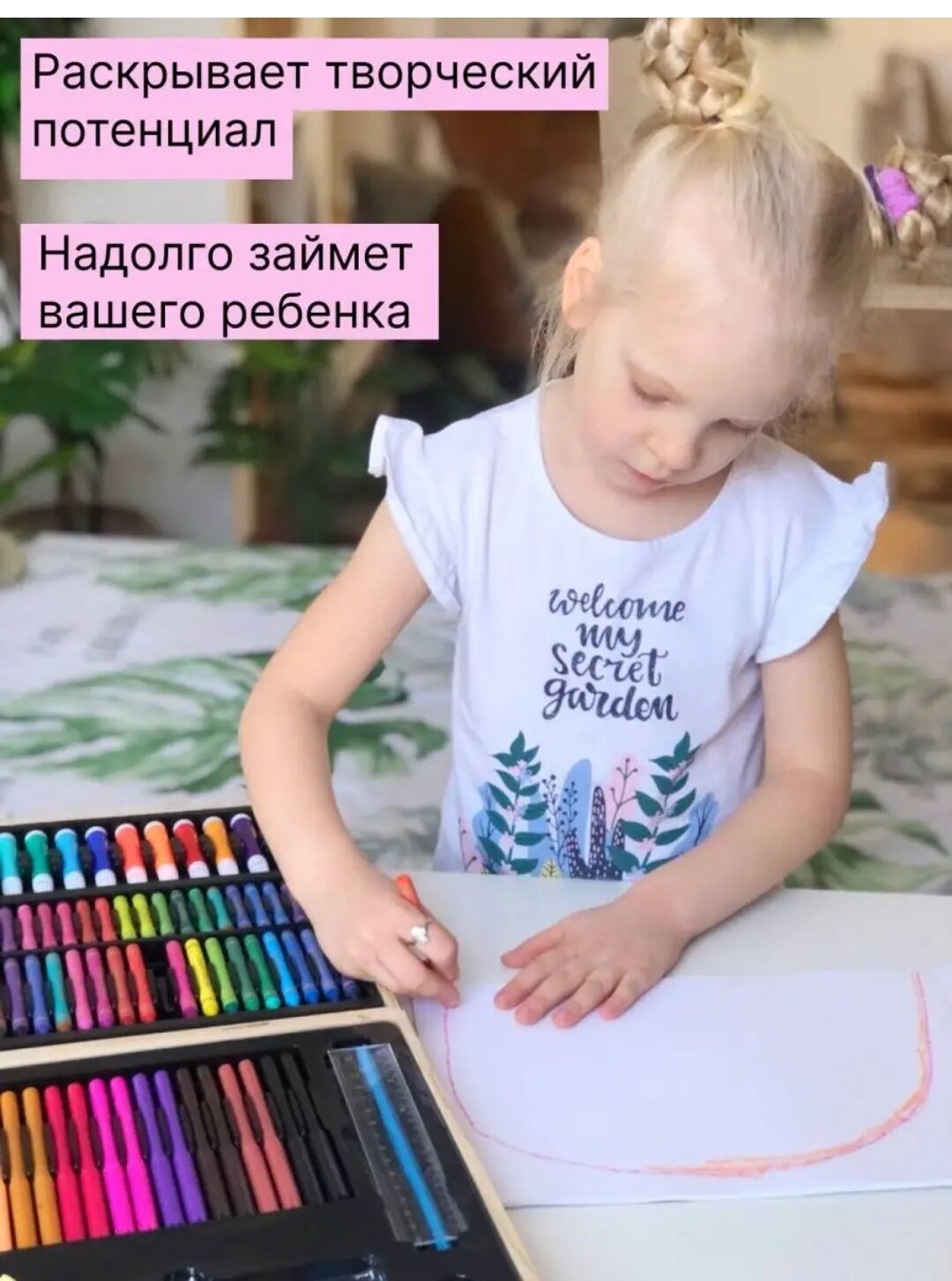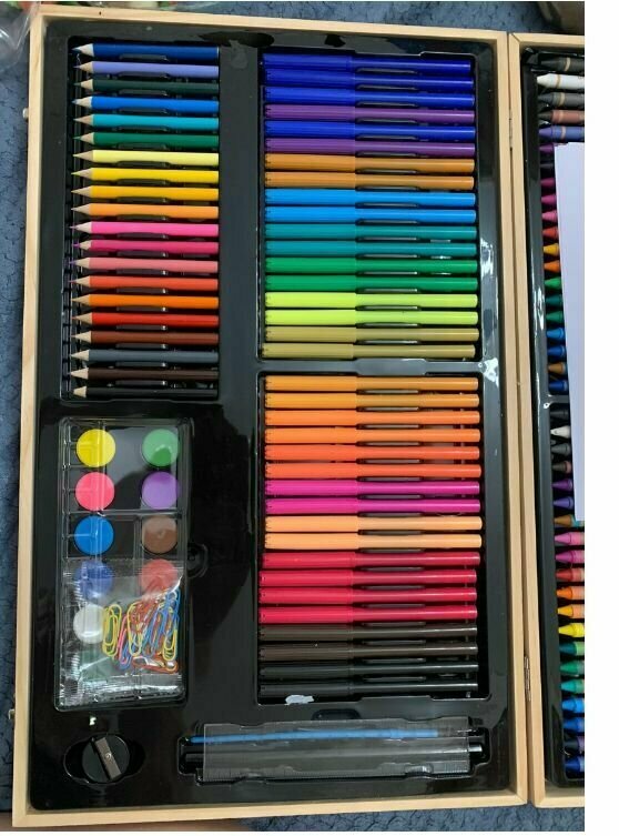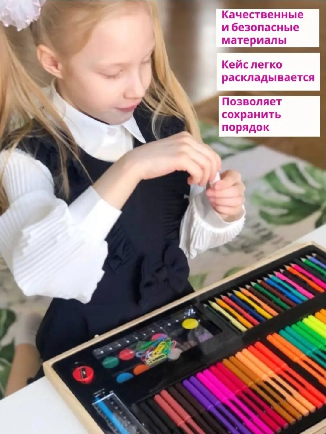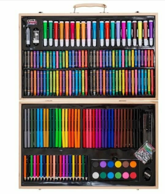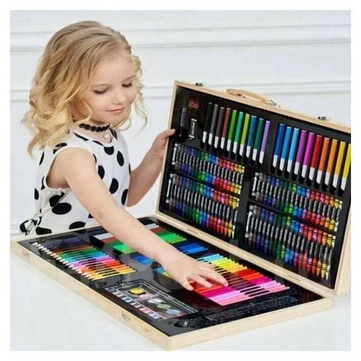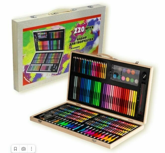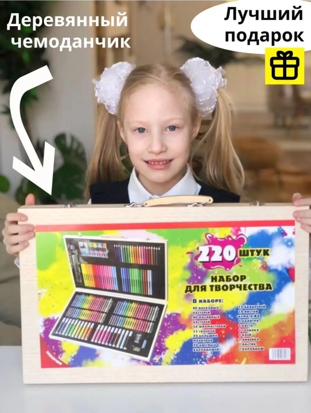 Набор для рисования и творчества 220 предметов в деревянном чемоданчике интересное: