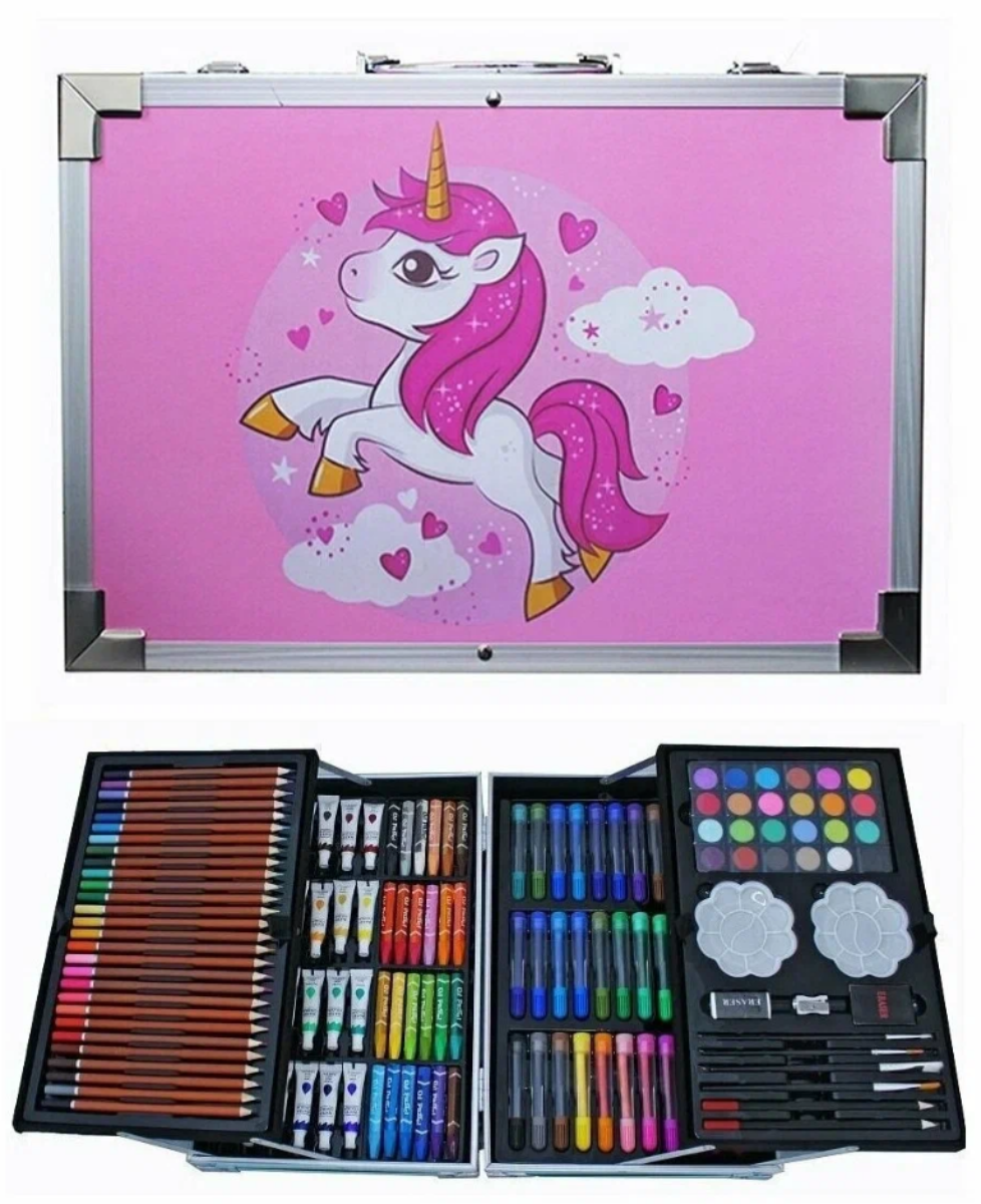 Купить Набор для рисования Единорог в алюминиевом чемоданчике, 145 предметов, розовый