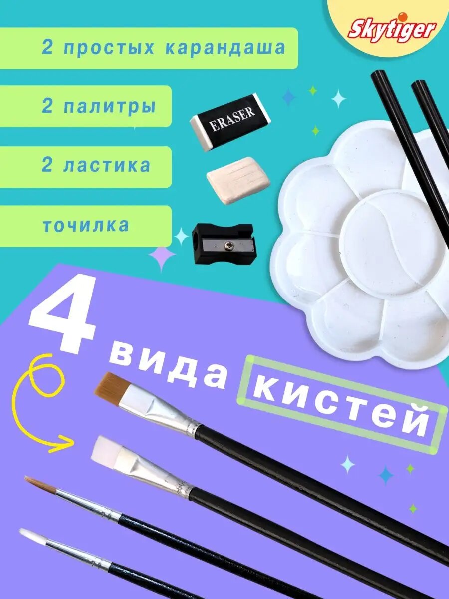 | Состав набора | карандаши / кисточка / краска / ластик / точилка / фломастеры |