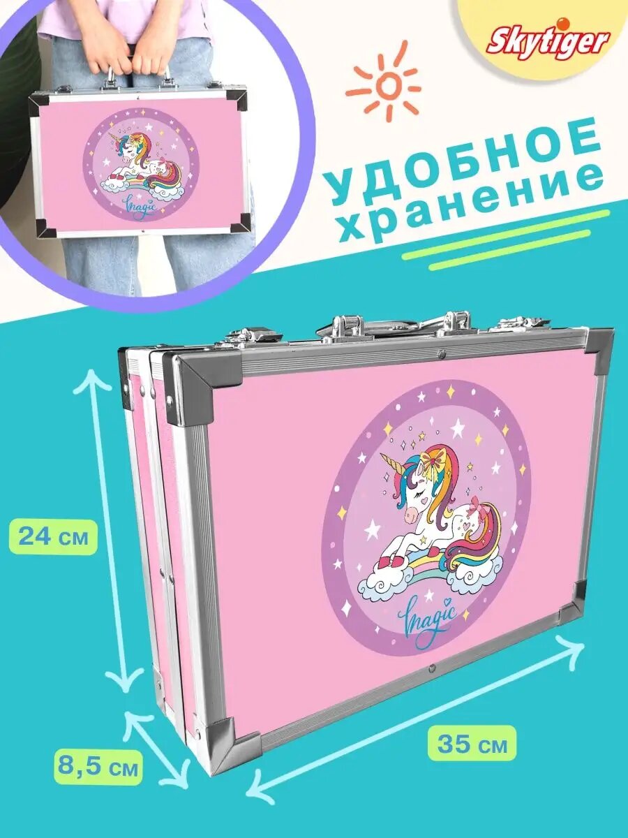 Набор для рисования SKYTIGER Звёздный единорог в алюминевом чемодане 145 предм. 38919-8
