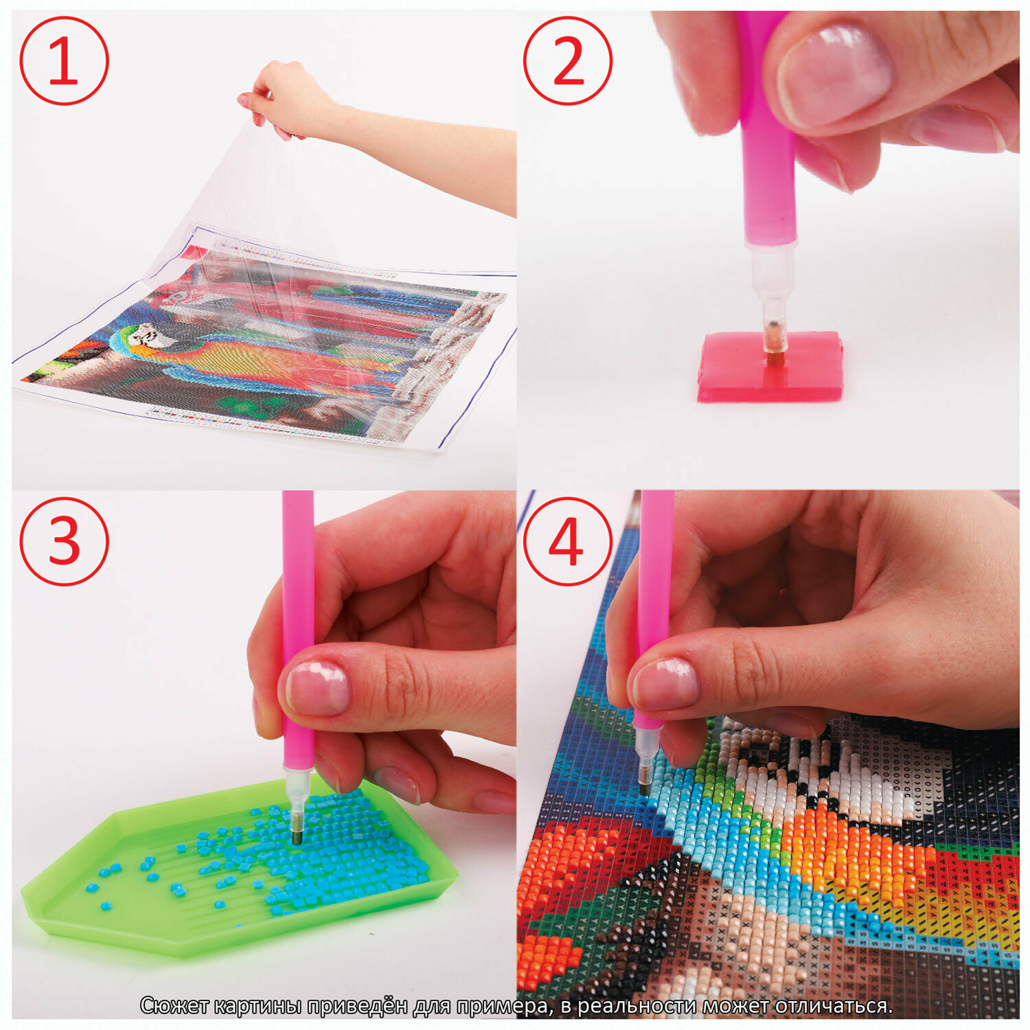 | Особенности | лоток для страз / пинцет / подрамник / с цифрами / стилус / холст / цветная схема / ювелирная огранка |