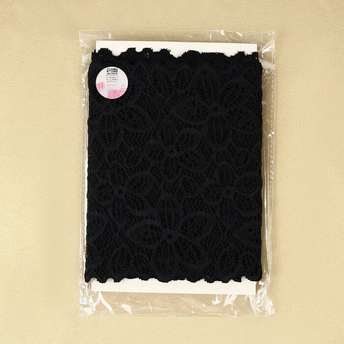 Купить Кружевная эластичная ткань 17см*3±0,5ярд пятилистник чёрный АУ 5119298