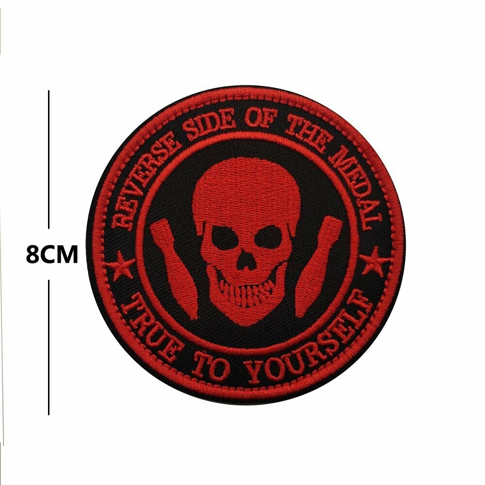 Купить Нашивка шеврон (патч) с липучкой №76, 8 см, Красный череп, верен себе, true to yourself