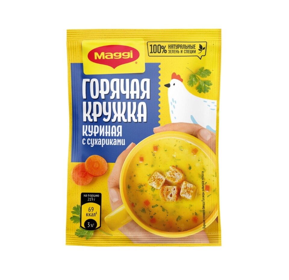 Суп моментального приготовления Maggi. Горячая кружка. Куриная с сухариками. 30 пакетов по 19г интересное: