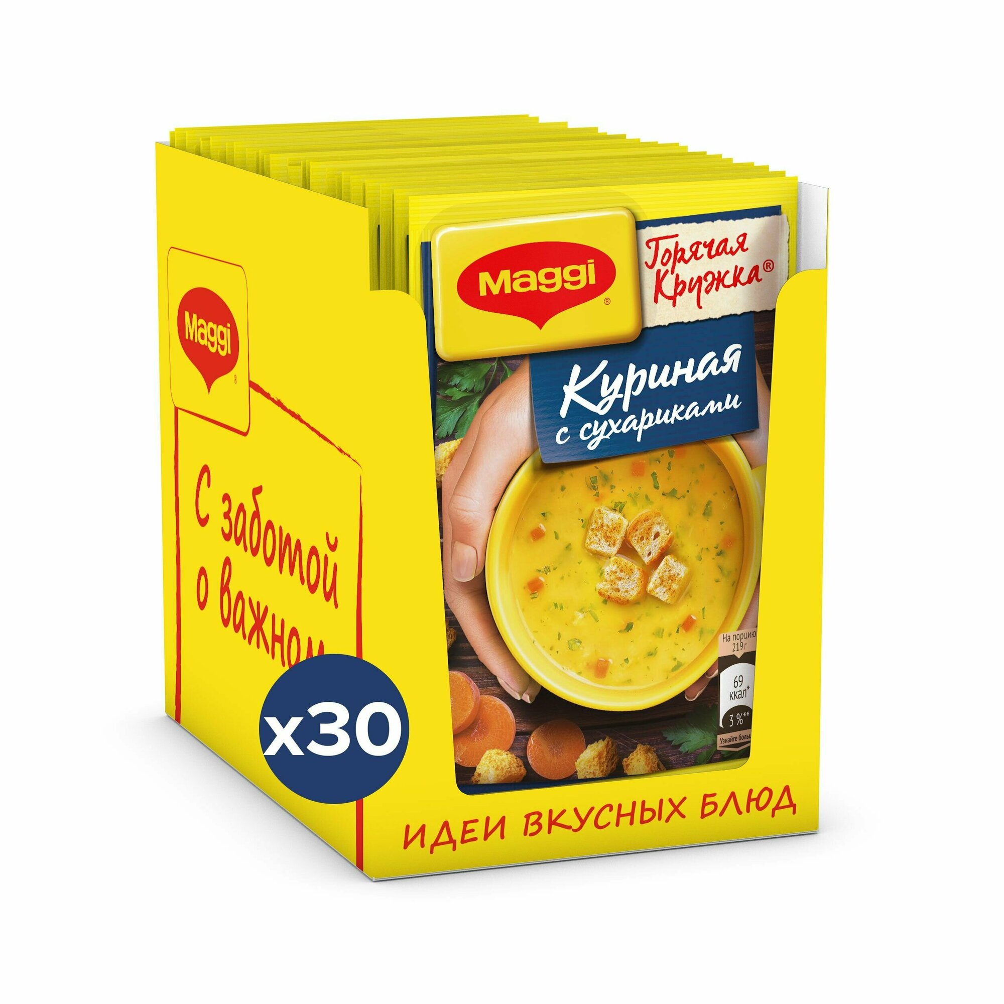 Купить Суп моментального приготовления Maggi. Горячая кружка. Куриная с сухариками. 30 пакетов по 19г
