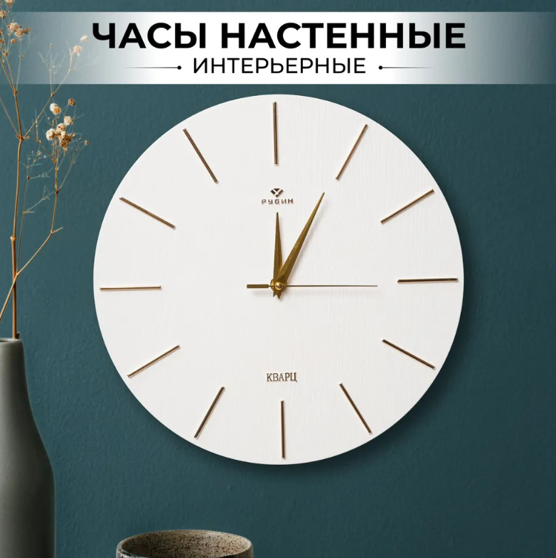 Часы настенные интерьерные, Рубин, часы бесшумные на кухню белые с золотым циферблатом 30 см