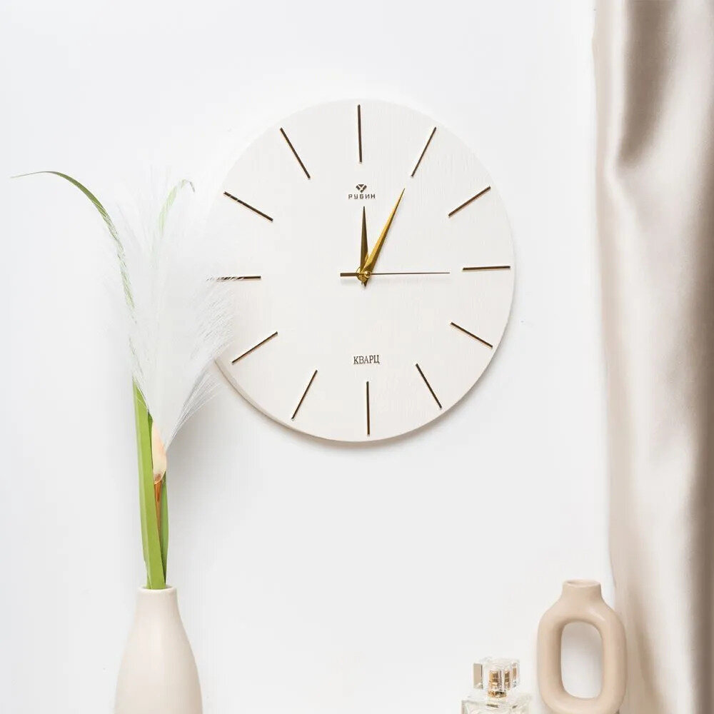 Часы настенные бесшумные интерьерные Рубин 34,5 см светлые кварцевые