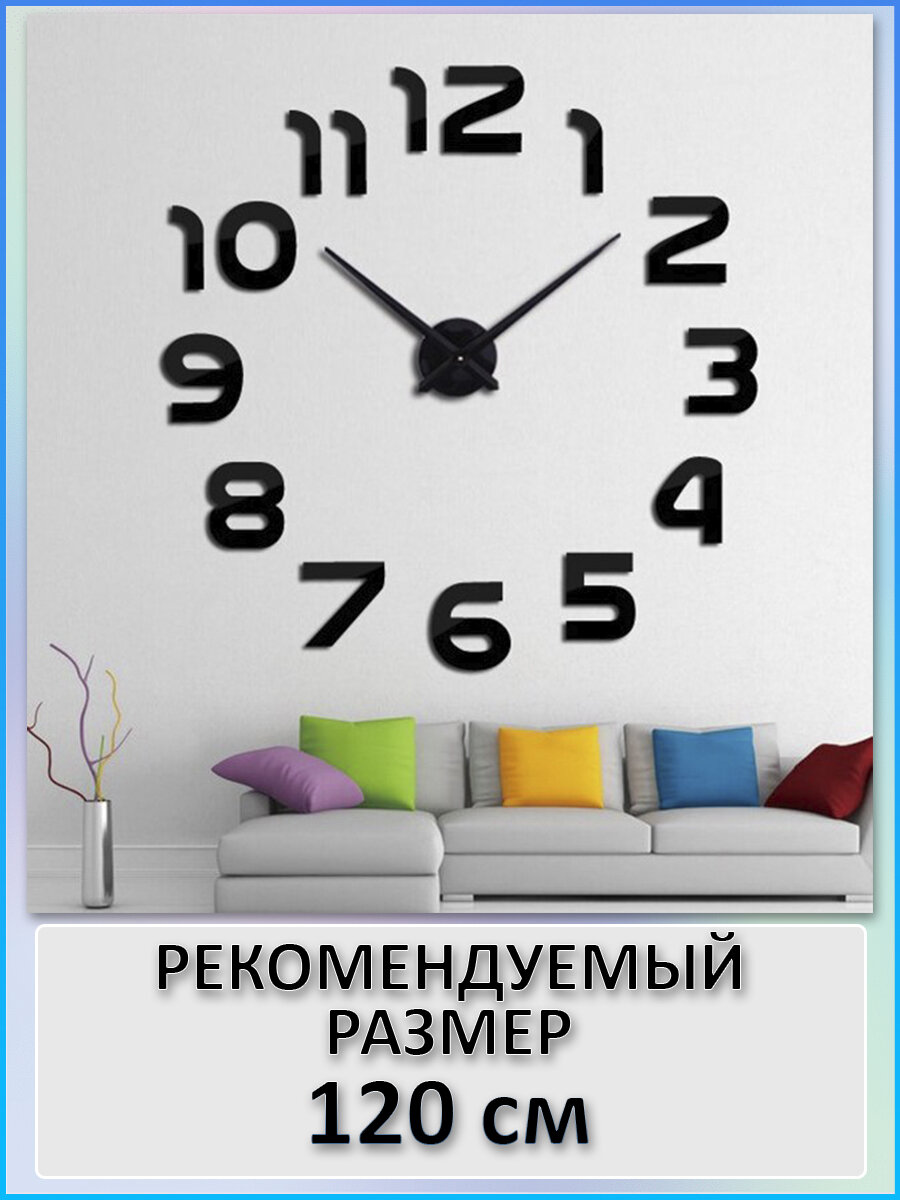 Купить Большие настенные 3D часы MIRRON 120 D2-Ч/Кварцевый бесшумный механизм/Часы конструктор/Часы наклейка/120 см/Чёрный глянцевый цвет