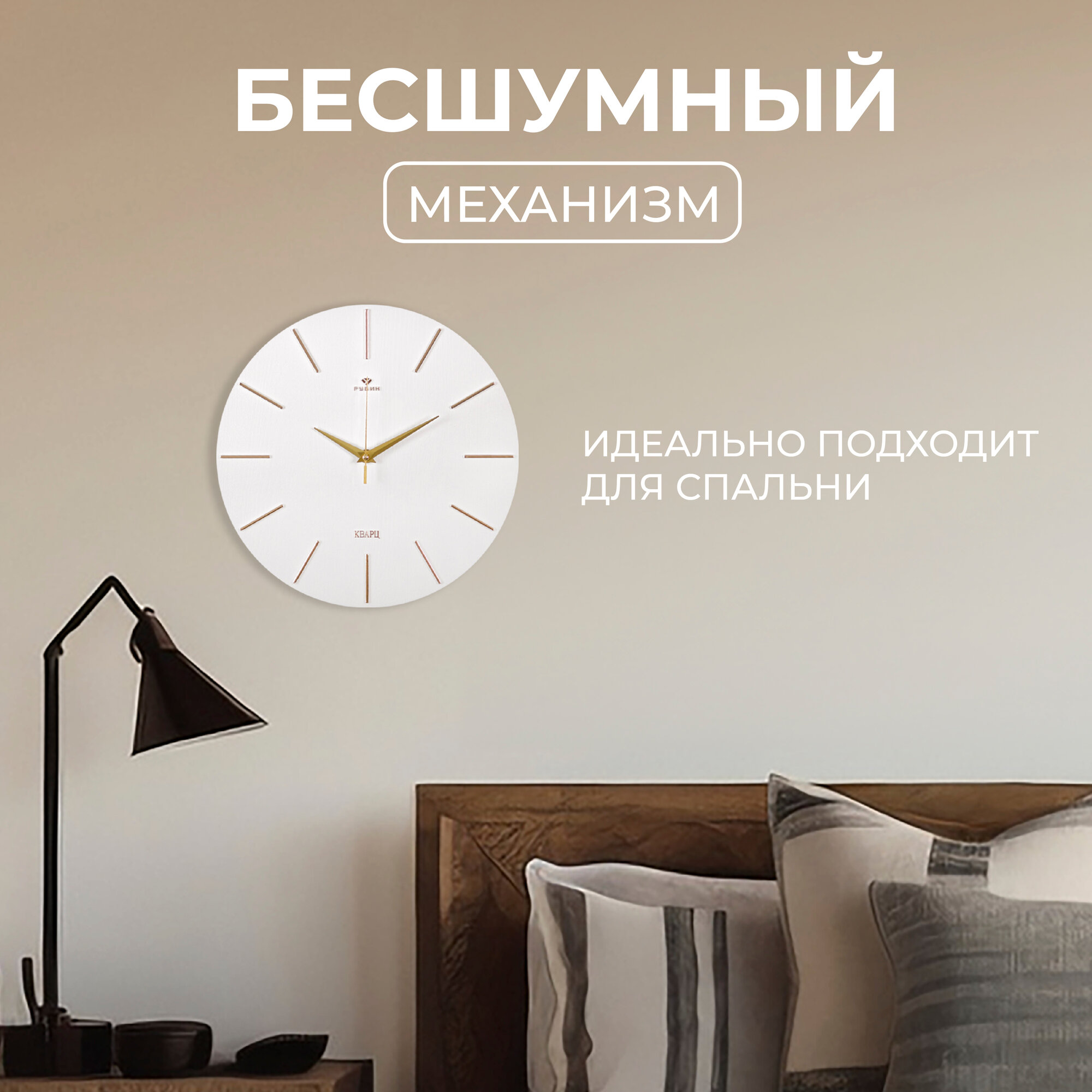 Часы настенные интерьерные, Рубин, часы бесшумные на кухню белые с золотым циферблатом 30 см