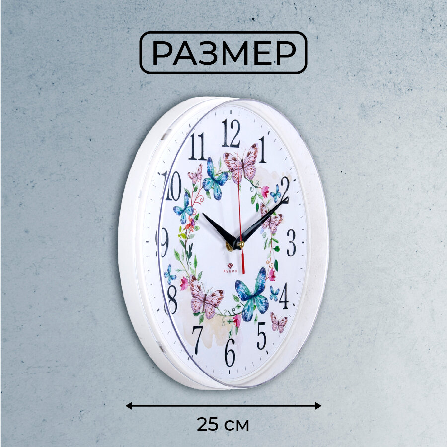 Настенные часы "Рубин" 2524-002, бесшумные, кварцевые, круглые, пластик, 25 см