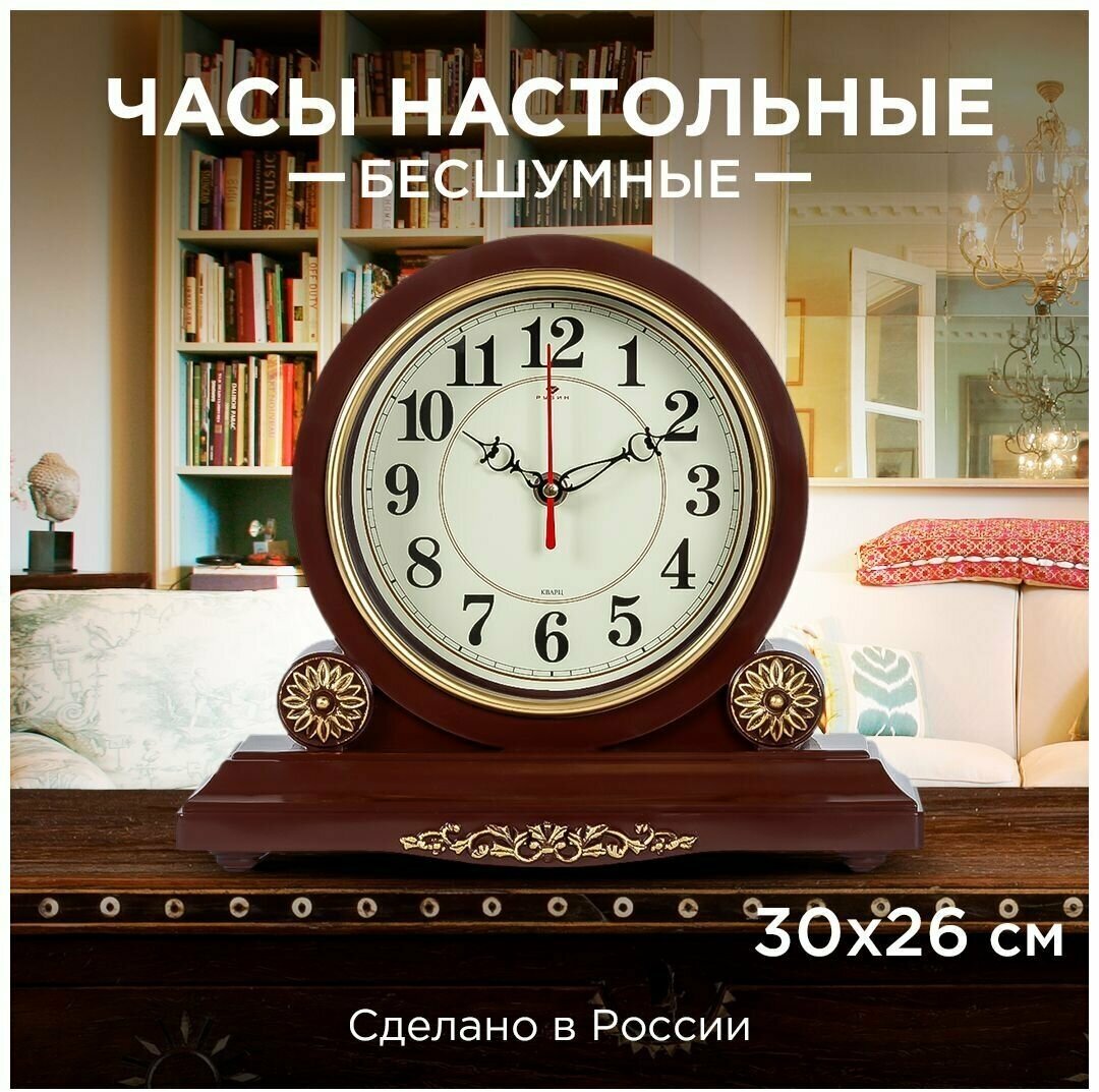 Часы настольные 3026-002 30х26 см, корпус коричневый с золотом "Классика" "Рубин" интересное: