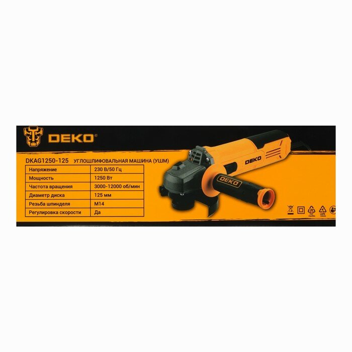 Купить Шлифмашина угловая Deko Dkag1250-125, 1250 Вт, 125 мм, М14, 3000-12000 об/мин Deko 10481403 .