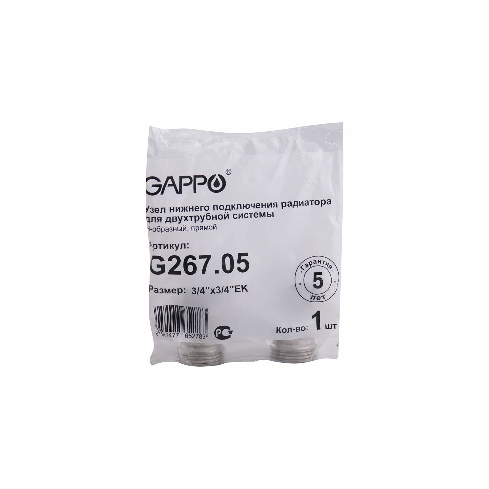 Узел нижнего подключения радиатора для двухтрубной системы Н-образный, прямой Gappo G267.05 3/4"х3/4"ЕК