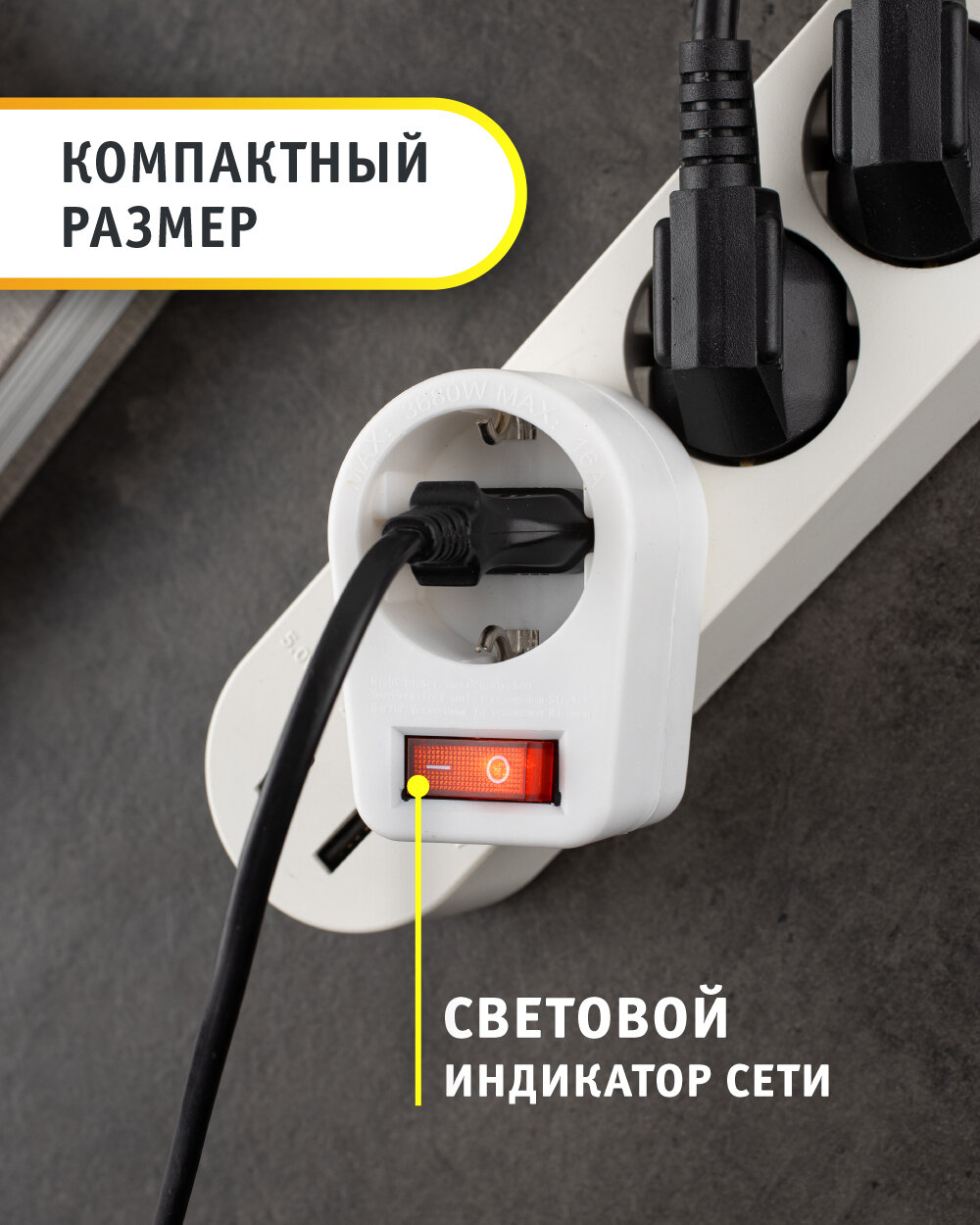 Тройник для розетки электрический с заземлением 16А, белый