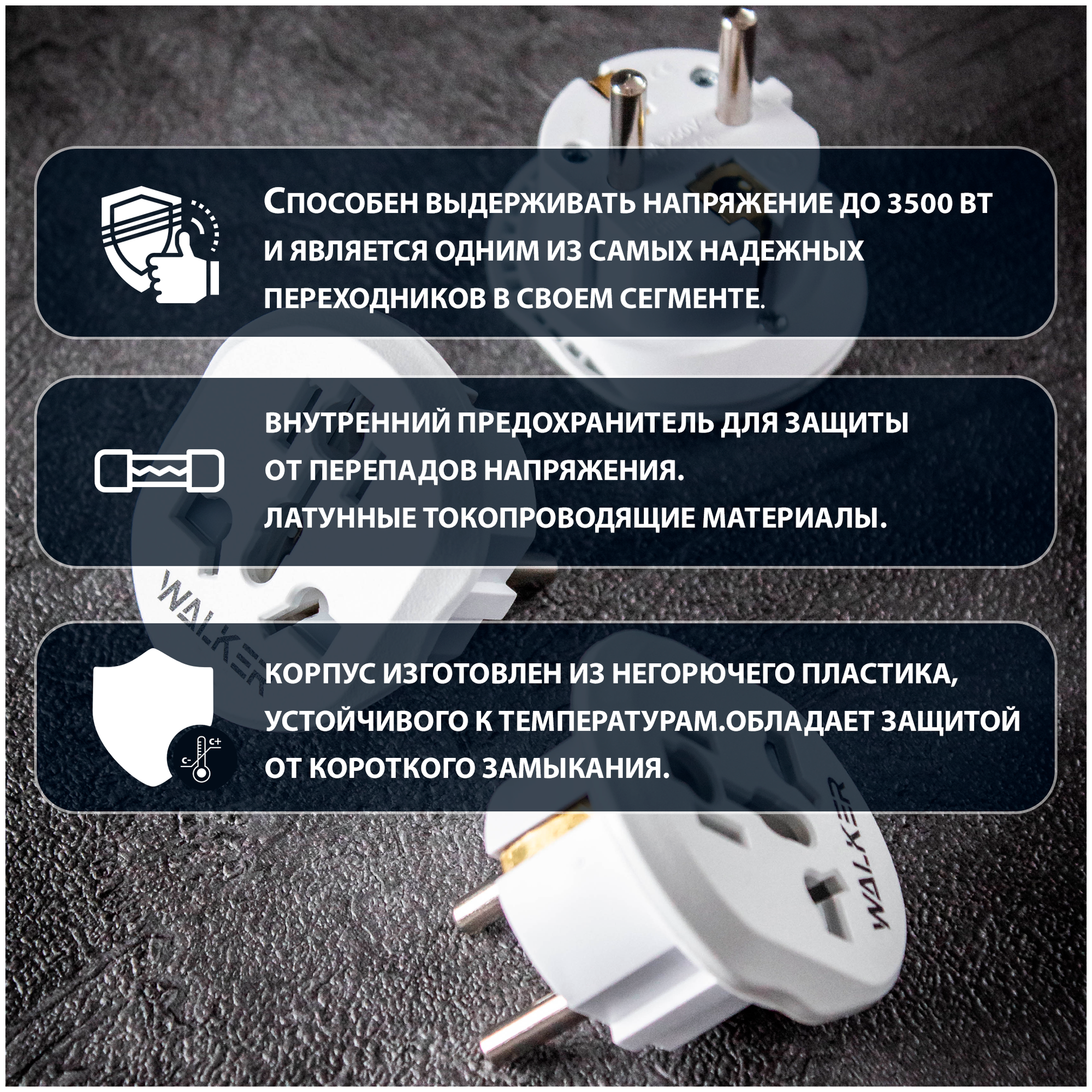 Универсальный плоский переходник для китайской розетки, WALKER, WH-01, 3 шт, евровилка, сетевой адаптер с американской вилки на русскую, белый