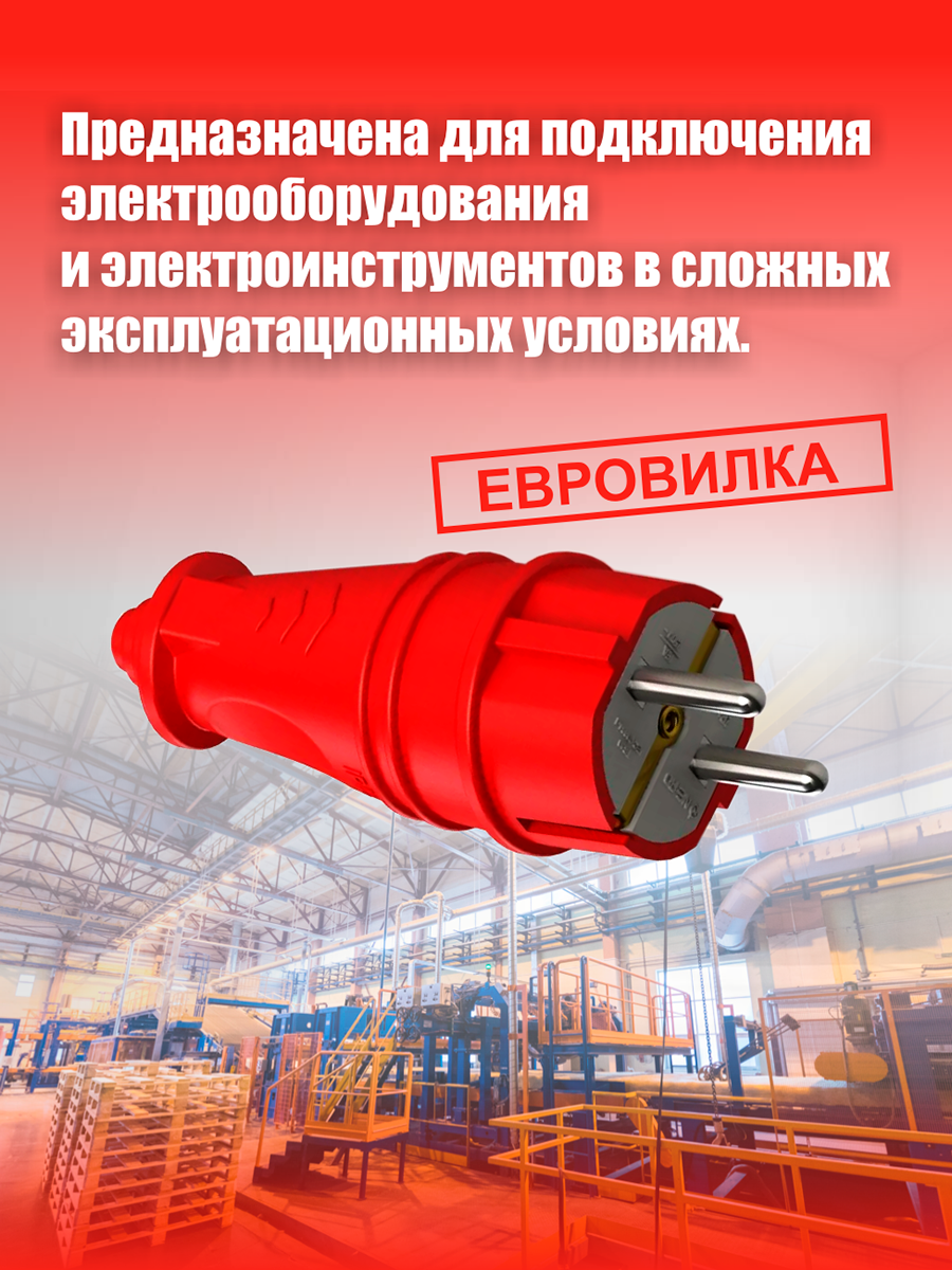 Вилка штепсельная прямая с заземлением, 2P+E евро (каучук), NE-AD, 16A, 250В, красная интересное: