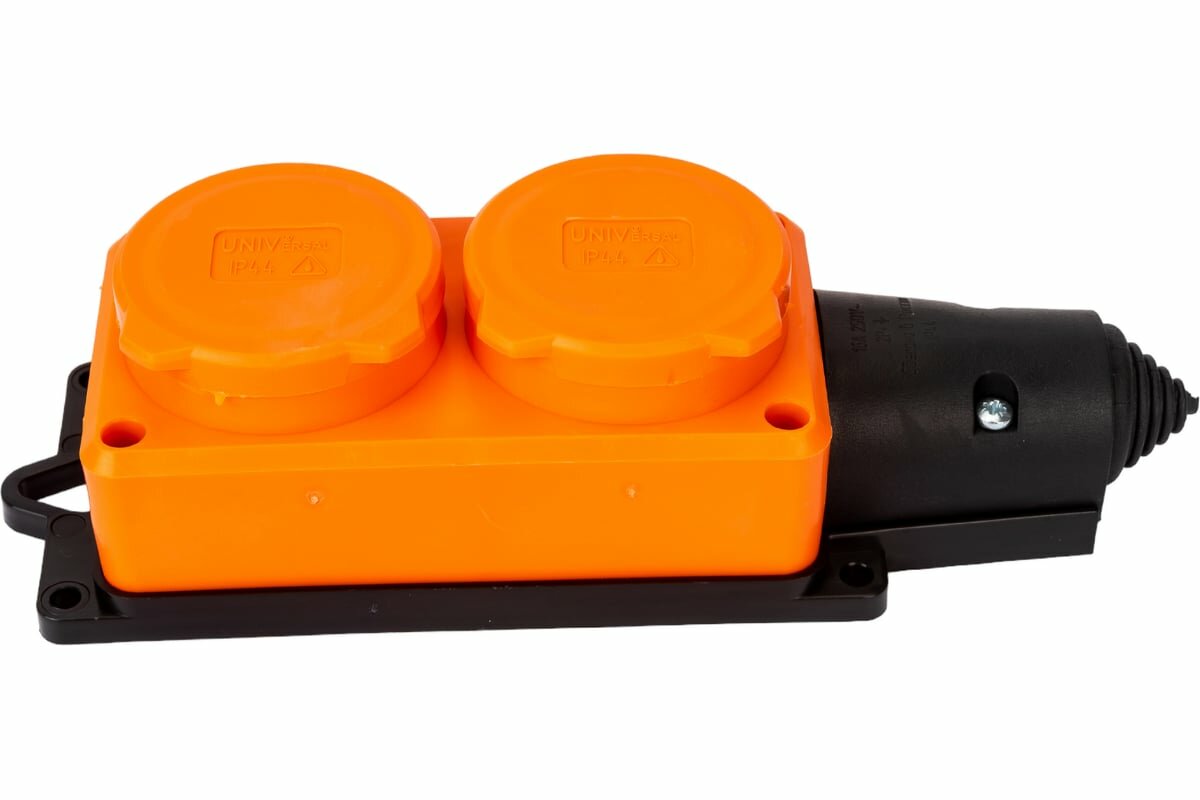 Купить Колодка удлинителя 2-м Компакт 1ф с заглушками каучук оранж. UNIVersal 3033