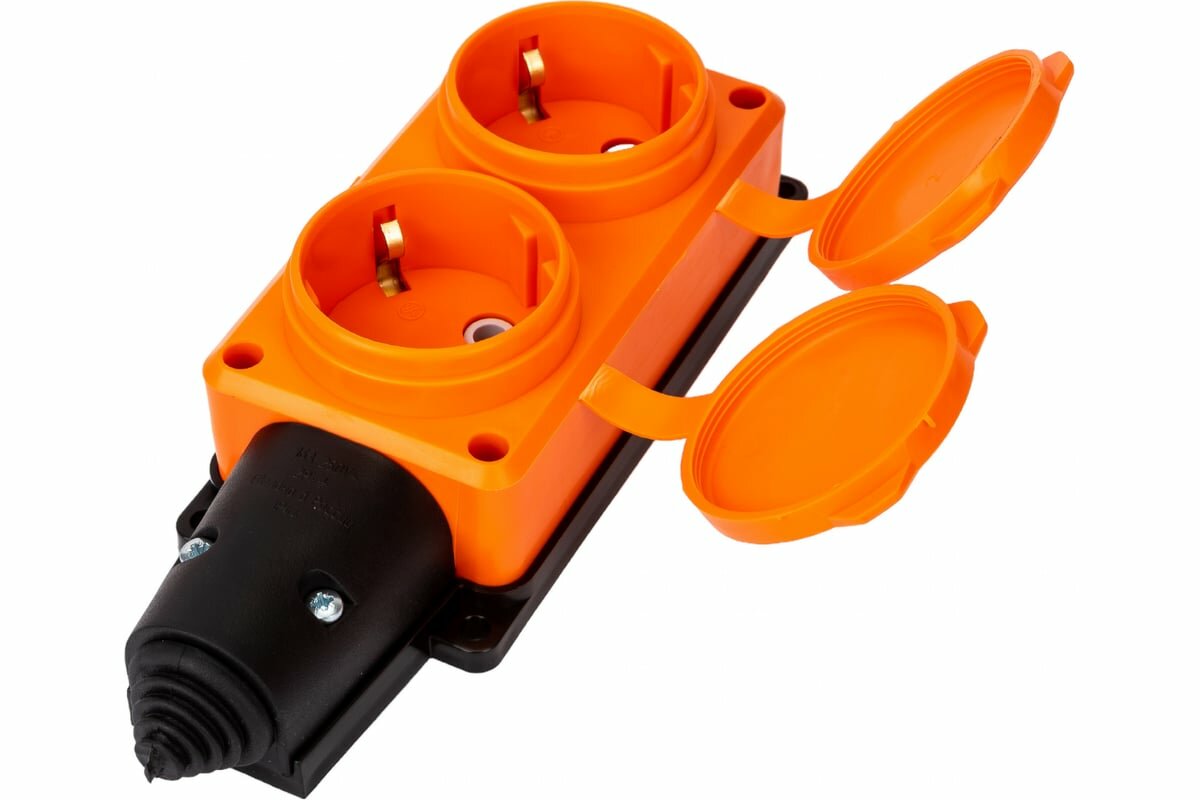 Колодка удлинителя Universal 2-м Компакт 1ф с заглушками каучук оранж. 3033