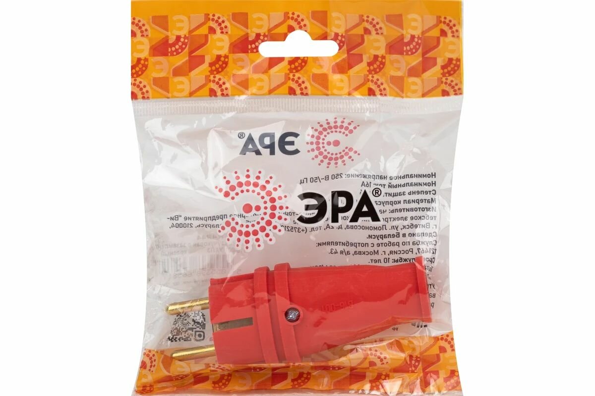 Купить Вилка VX10-R-IP44 16А IP44 прямая с заземл. каучук красн. ЭРА Б0055415