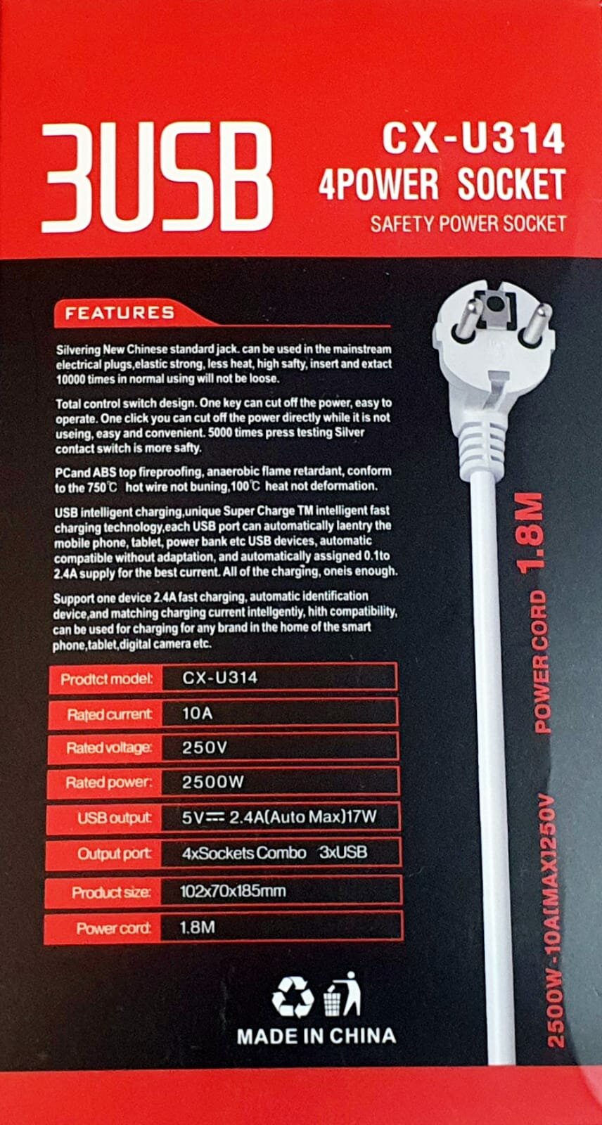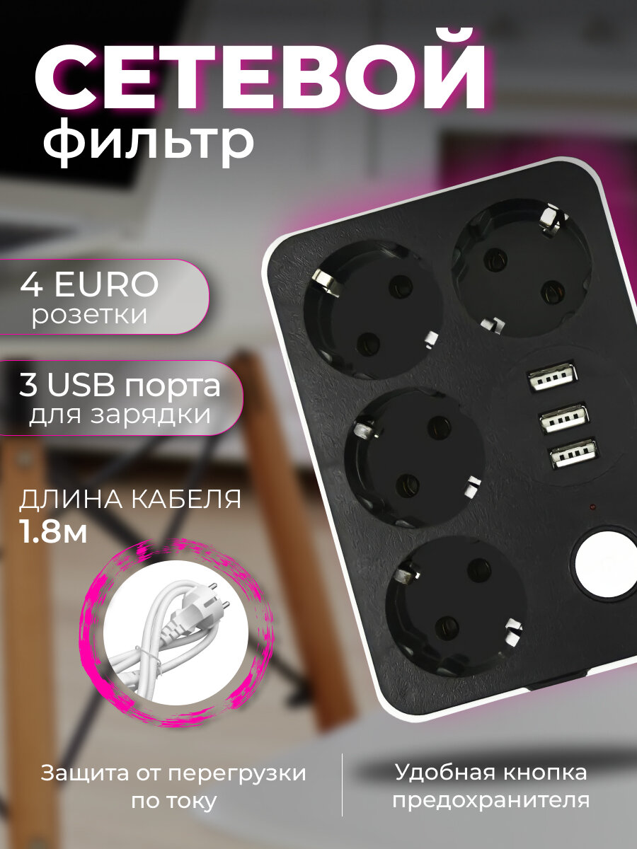 Сетевой фильтр с 3 USB, 1,8 м / Удлинитель 1,8 м. 4 порта и 3 usb-слота / CX-U314 интересное: