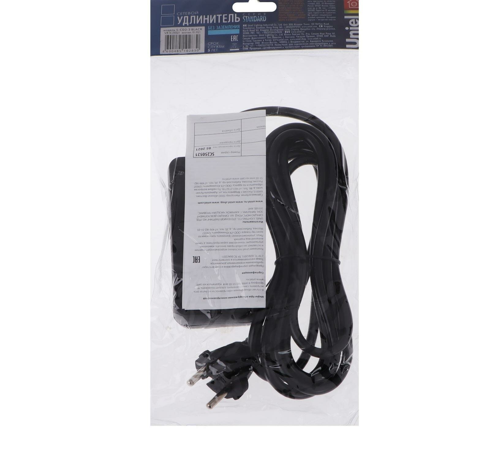 Удлинители серии Standard без заземления UNIEL (UL-00003603) S-CD2-3 BLACK