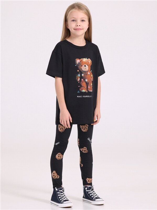 Леггинсы для девочки детские лосины хлопок 100% Апрель 1ДРЛ3848001н/560/*/5265/*/*/*/* черный,коричневый 52-98