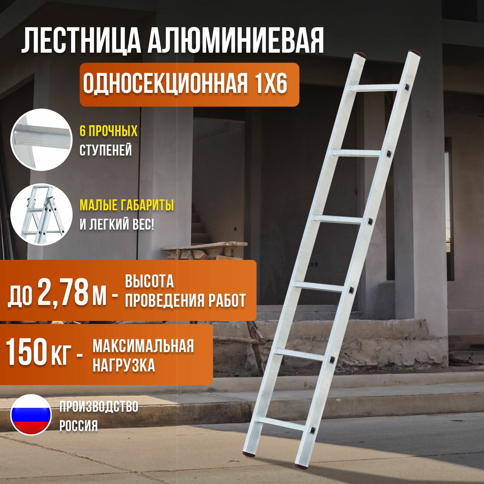 Купить Лестница алюминиевая односекционная ALVEX 1х6, 6 ступеней