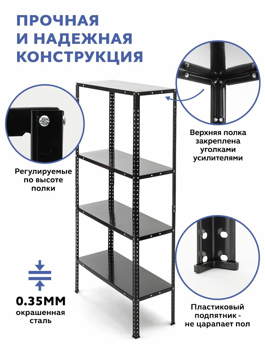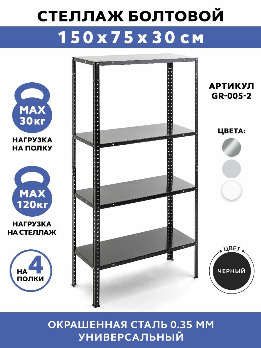 Стеллаж металлический болтовой GASTRORAG GR-005-5, 4 полки, размеры 150х75х30 см, этажерка для кухни, мебель лофт, подставка для цветов и рассады, система хранения для дома, дачи и гаража